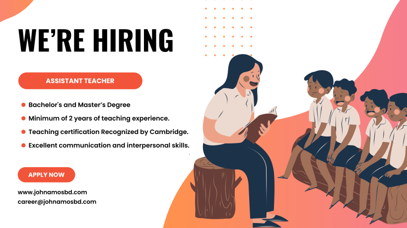 John Amos International School John Amos International School, a leading institution committed to academic excellence and holistic education, invites applications from qualified and passionate educators for multiple teaching positions for the academic session 2025–26. The school is currently hiring Assistant Teachers for Bangla, English, and Computing subjects, based at its